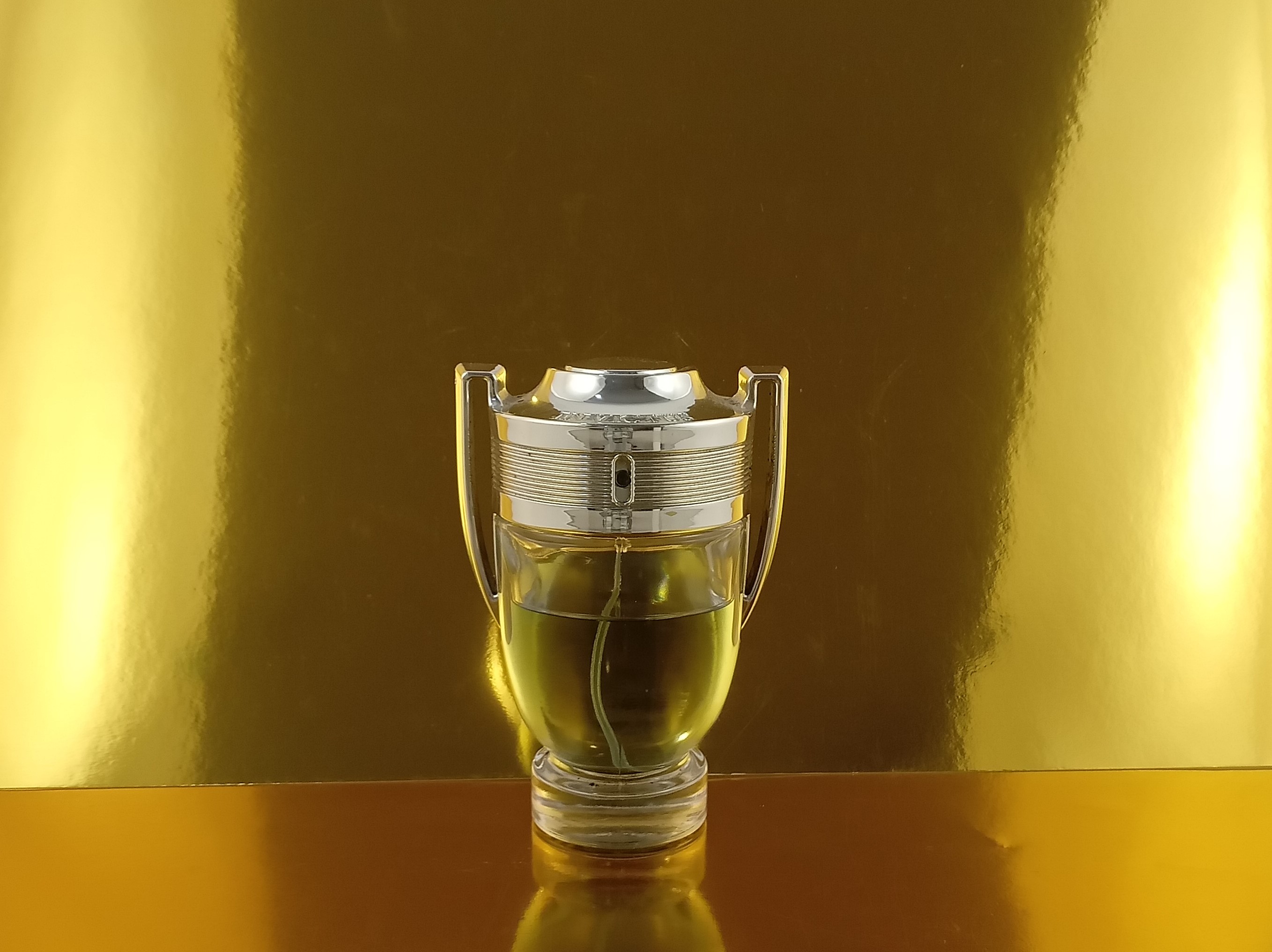 INVICTUS که در لغت به معنای شکست ناپذیر است . علت اینکه شیشه این عطر مانند یک کاپ قهرمانی است این است که رایحه این عطر با روحیات مردان ورزشکار و پر تحرک و فعال سازگار می باشد .